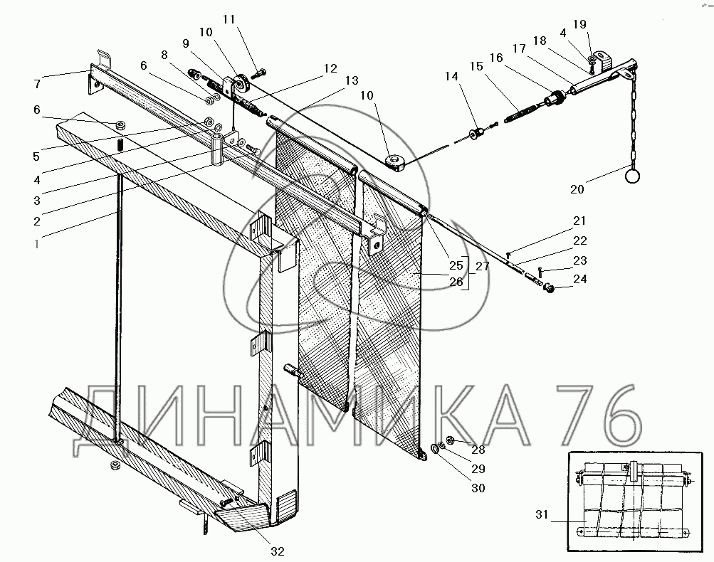 Перечень комплектующих от Штора радиатора на УРАЛ-4320-31