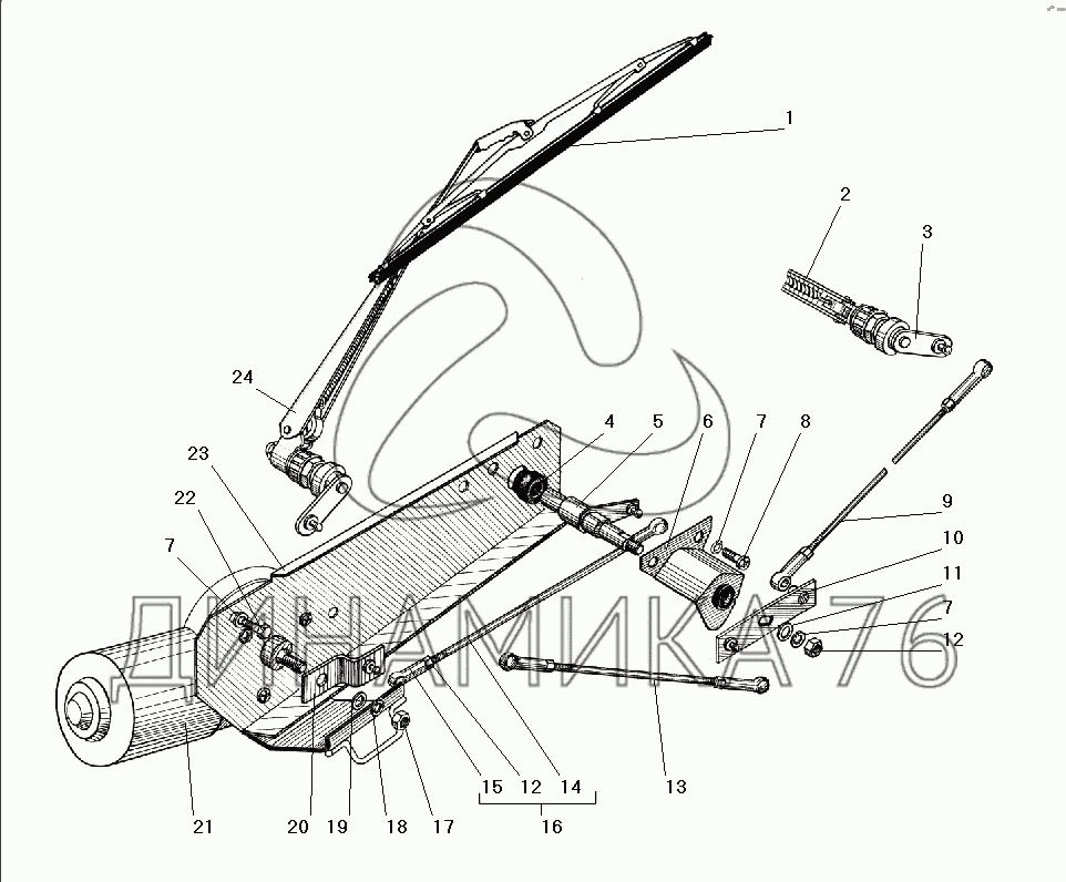 Перечень комплектующих от Стеклоочиститель и его привод на УРАЛ-4320-31