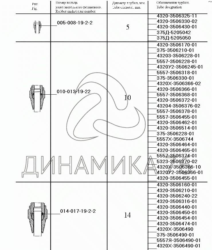 Перечень комплектующих от Уплотнение трубопроводов на УРАЛ-4320-31
