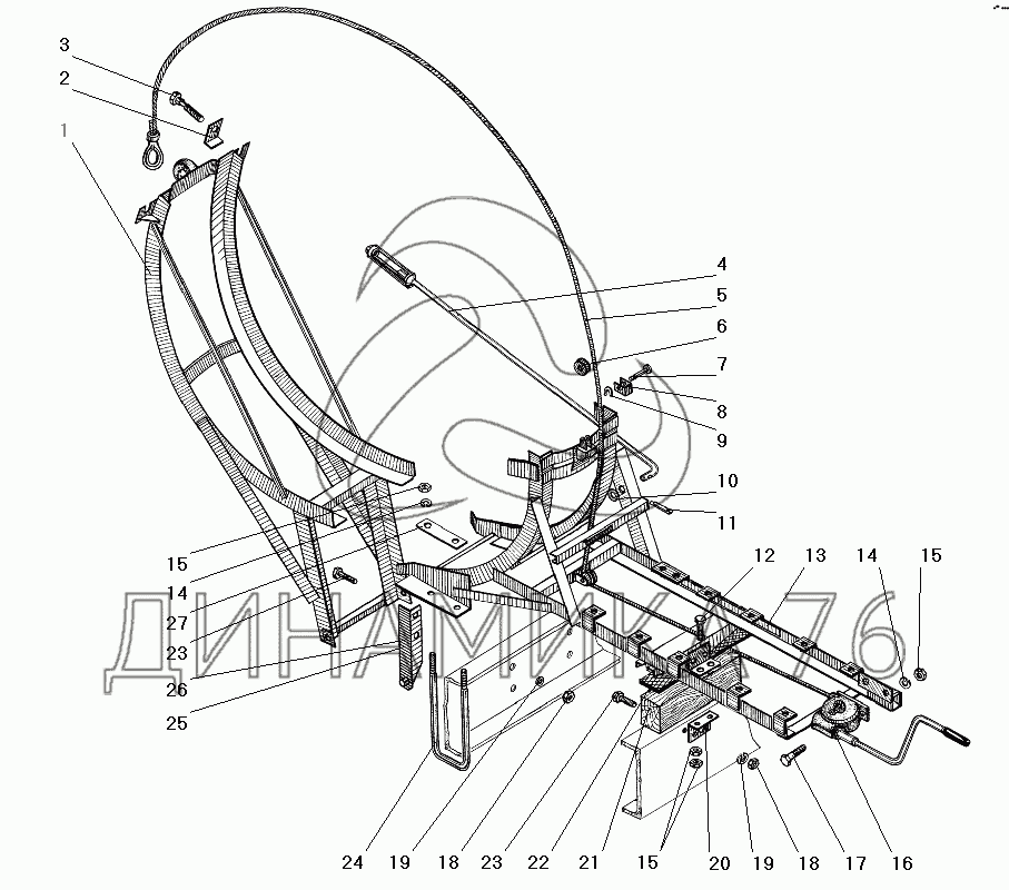 Перечень комплектующих от Вертикальный держатель запасного колеса на УРАЛ-4320-31