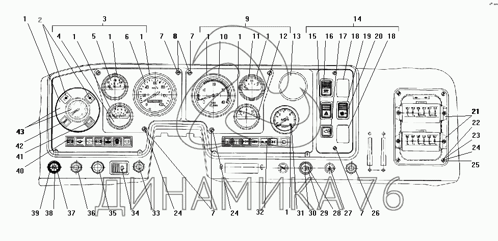 Перечень комплектующих от Панель приборов на УРАЛ-4320-41