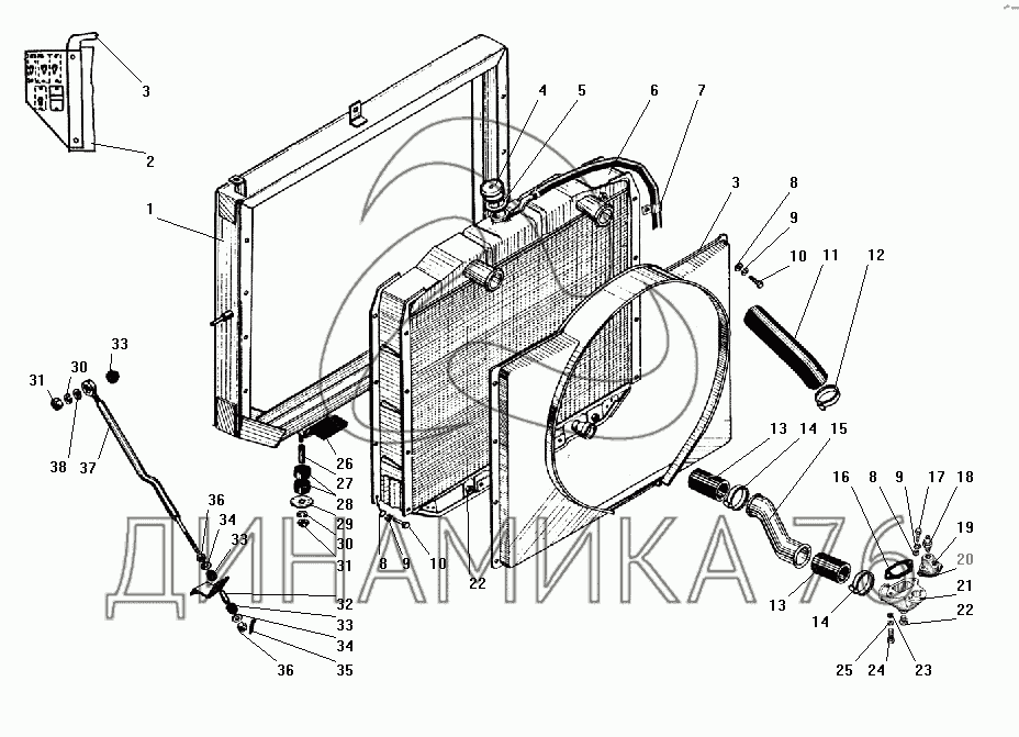 Схемы запчастей предназначены для справочных целей! Мы продаем не все запчасти от Радиатор системы охлаждения на УРАЛ-4320-41, представленные в этом списке.