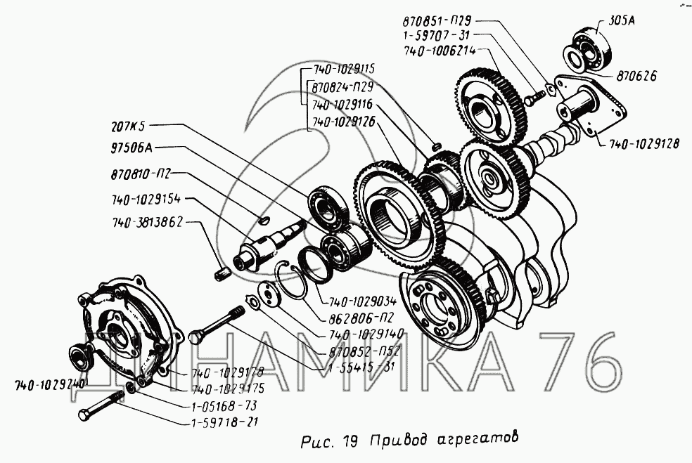 Перечень комплектующих от Привод агрегатов на УРАЛ-4320