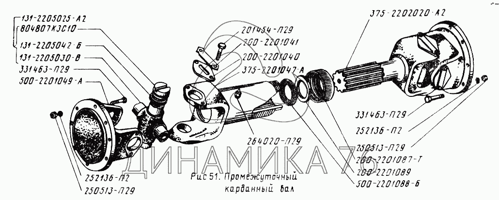 Схемы запчастей предназначены для справочных целей! Мы продаем не все запчасти от Промежуточный карданный вал на УРАЛ-4320, представленные в этом списке.