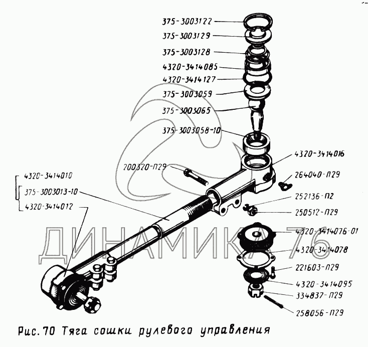 Перечень комплектующих от Тяга сошки рулевого управления на УРАЛ-4320