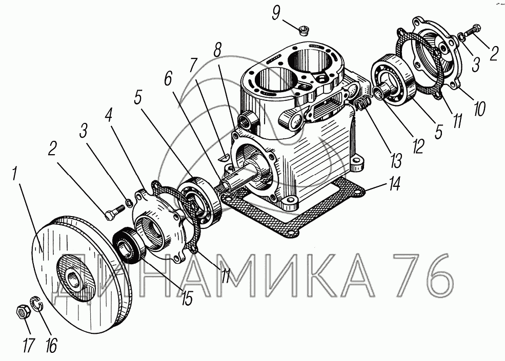 Перечень комплектующих от Блок-картер компрессора на УРАЛ-4320-60