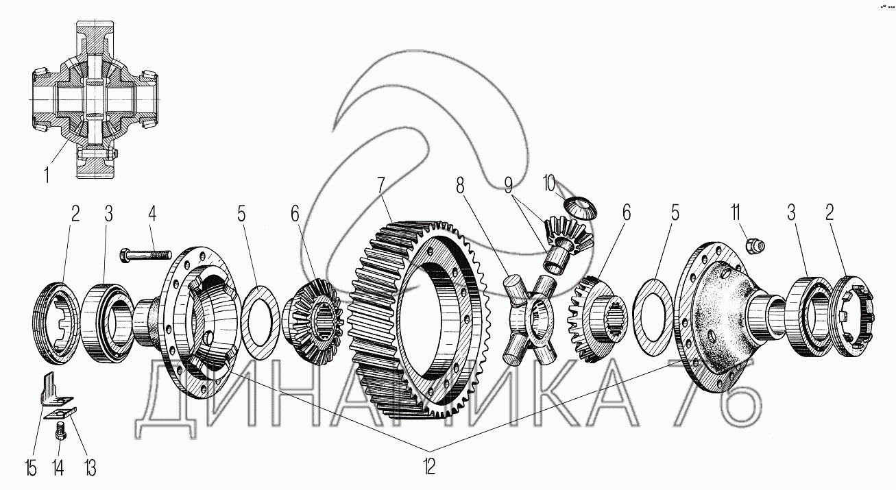 Перечень комплектующих от Дифференциал переднего моста на УРАЛ-4320-60
