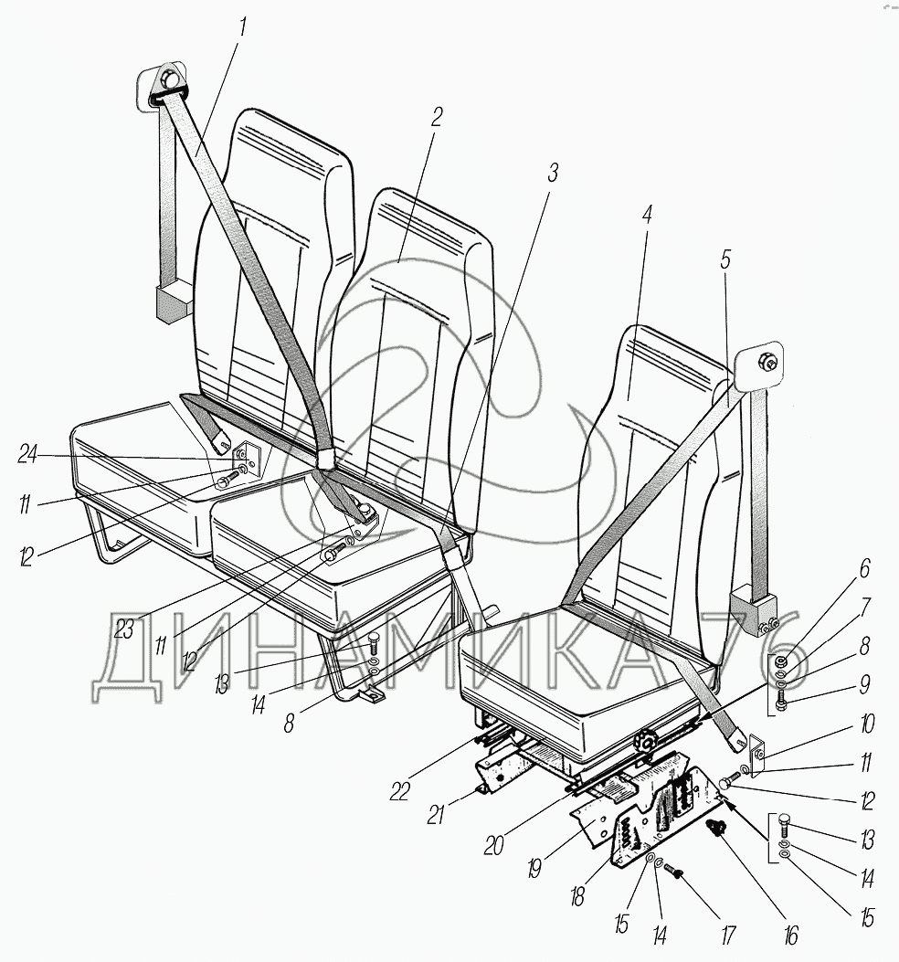 Перечень комплектующих от Сиденья водителя и пассажиров на УРАЛ-4320-60