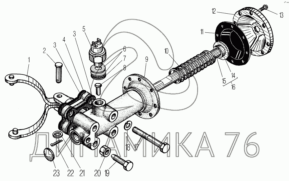 Перечень комплектующих от Механизм включения блокировки дифференциала на УРАЛ-4320-61