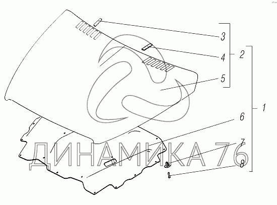 Перечень комплектующих от Капот с термошумоизоляцией на УРАЛ-4320-6951-74