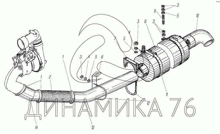 Система выпуска газов — УРАЛ-4320-6951-74: