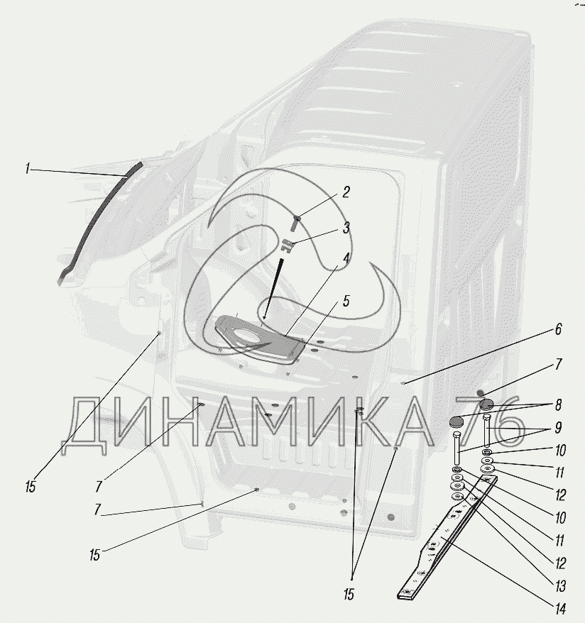 Перечень комплектующих от Установка деталей кабины на УРАЛ-4320-6951-74