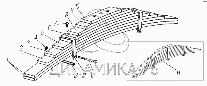 Перечень комплектующих от Задняя рессора на УРАЛ-4320-6951-74