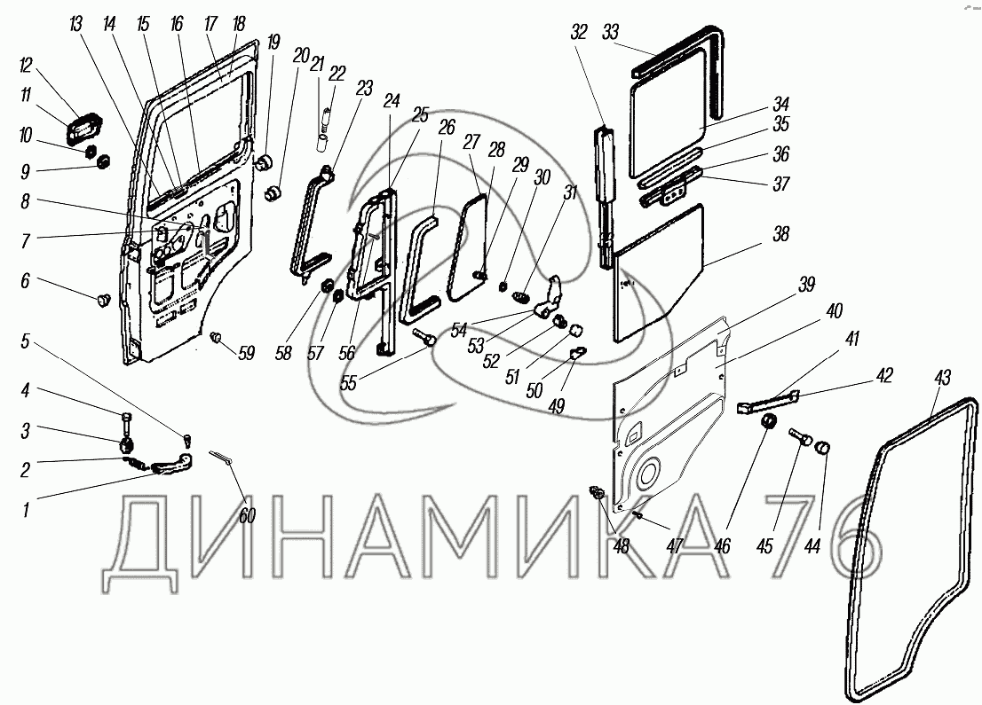 Перечень комплектующих от Двери кабины на УРАЛ-4320-80М/82М