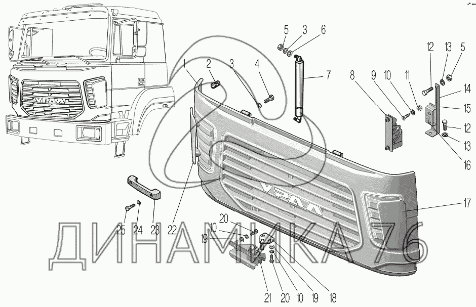 Перечень комплектующих от Установка наружной облицовки на УРАЛ-4320-80М/82М