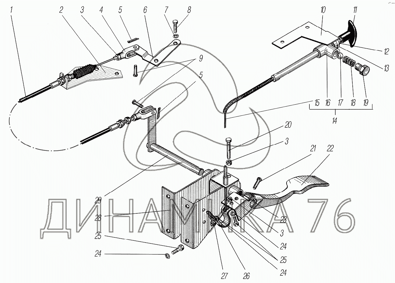 Перечень комплектующих от Привод акселератора на УРАЛ-44202-0511-58