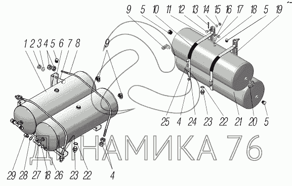 Установка воздушных баллонов — УРАЛ-44202-3511-80: