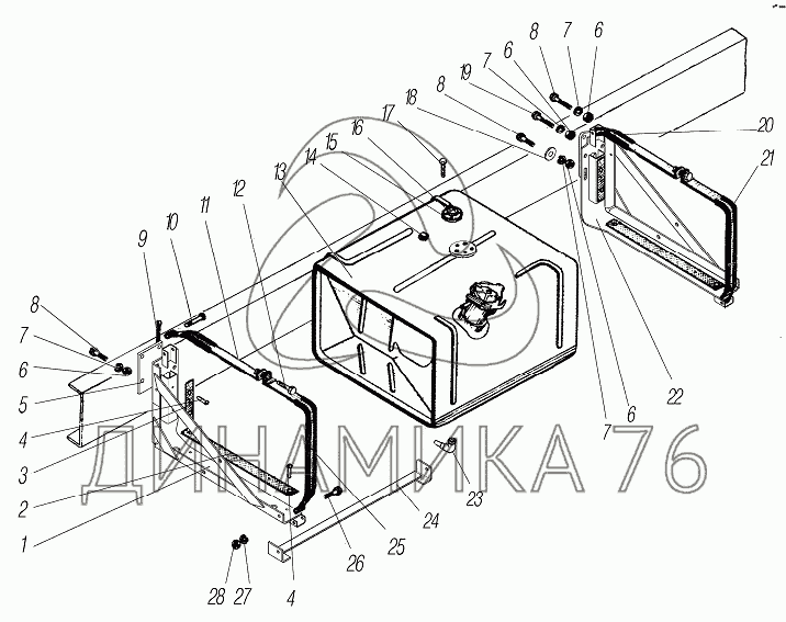 Перечень комплектующих от Дополнительный топливный бак на УРАЛ-44202-3511-80