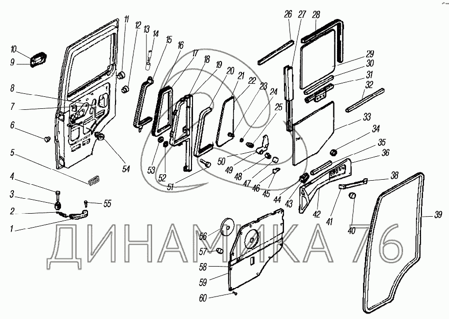 Перечень комплектующих от Двери кабины на УРАЛ-44202-3511-80