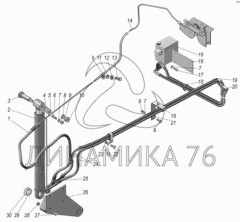 Механизм опрокидывания кабины на УРАЛ-44202-3511-80 (до 2013 г.)