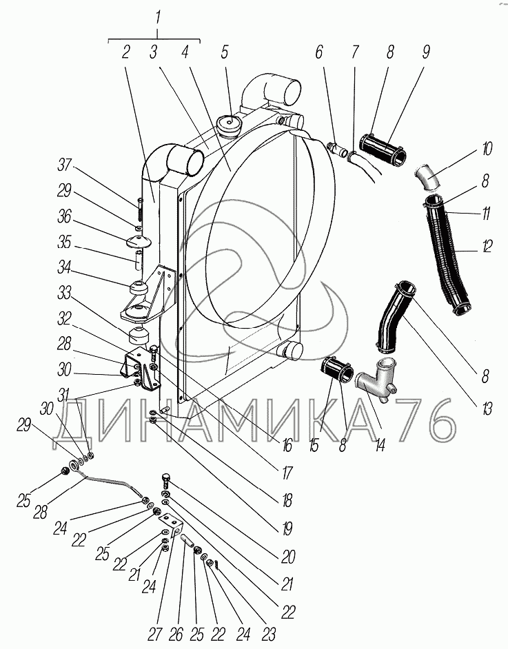 Перечень комплектующих от Система охлаждения на УРАЛ-44202-3511-80