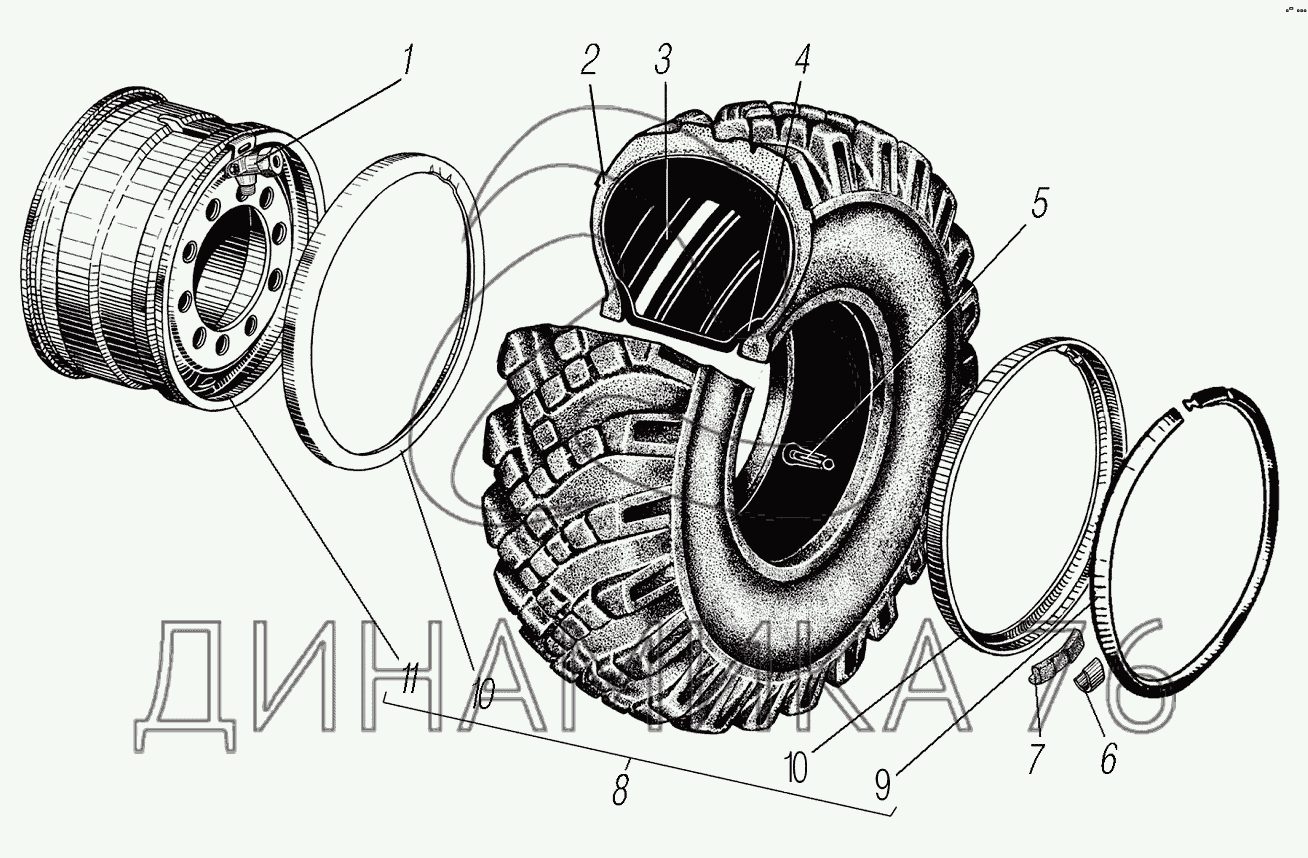 Колесо и шина — УРАЛ-44202-3511-80М: