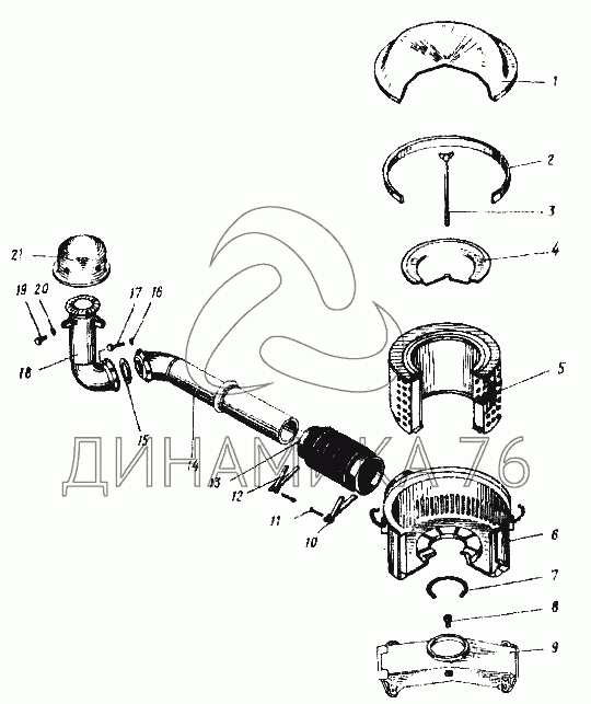 Перечень комплектующих от Фильтр воздушный и воздухопровод на УРАЛ-4420