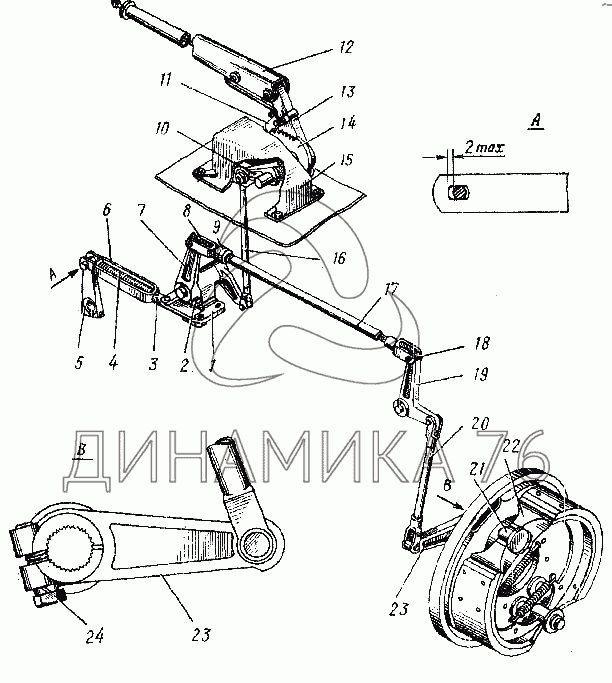 Привод стояночного тормоза на УРАЛ-4420 (до 1981 г.)