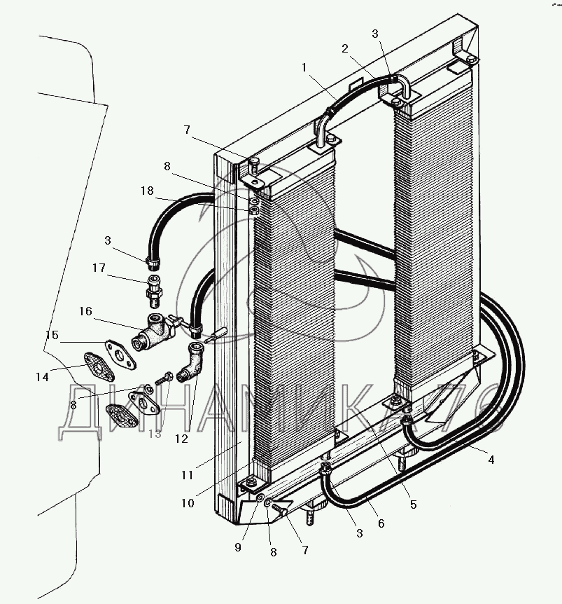 Перечень комплектующих от Масляный радиатор на УРАЛ-532301