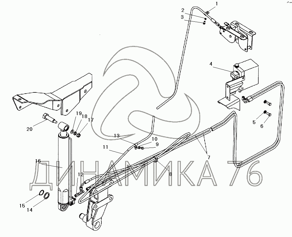 Механизм опрокидывания кабины на УРАЛ-532301