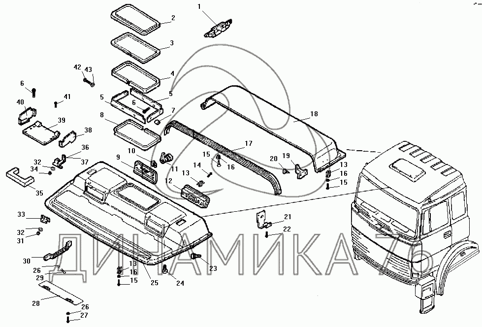 Схемы запчастей предназначены для справочных целей! Мы продаем не все запчасти от Обивка крыши на УРАЛ-532301, представленные в этом списке.
