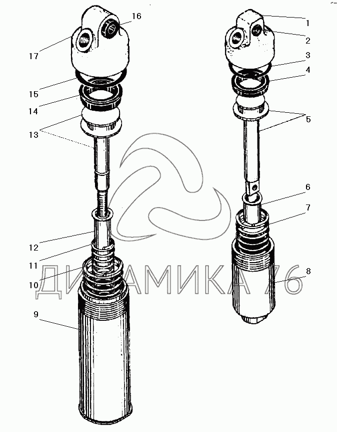 Перечень комплектующих от Пневматические цилиндры вспомогательного тормоза на УРАЛ-532301