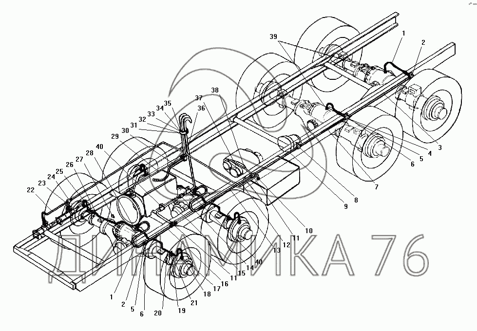 Трубка в сборе от среднего к заднему мосту