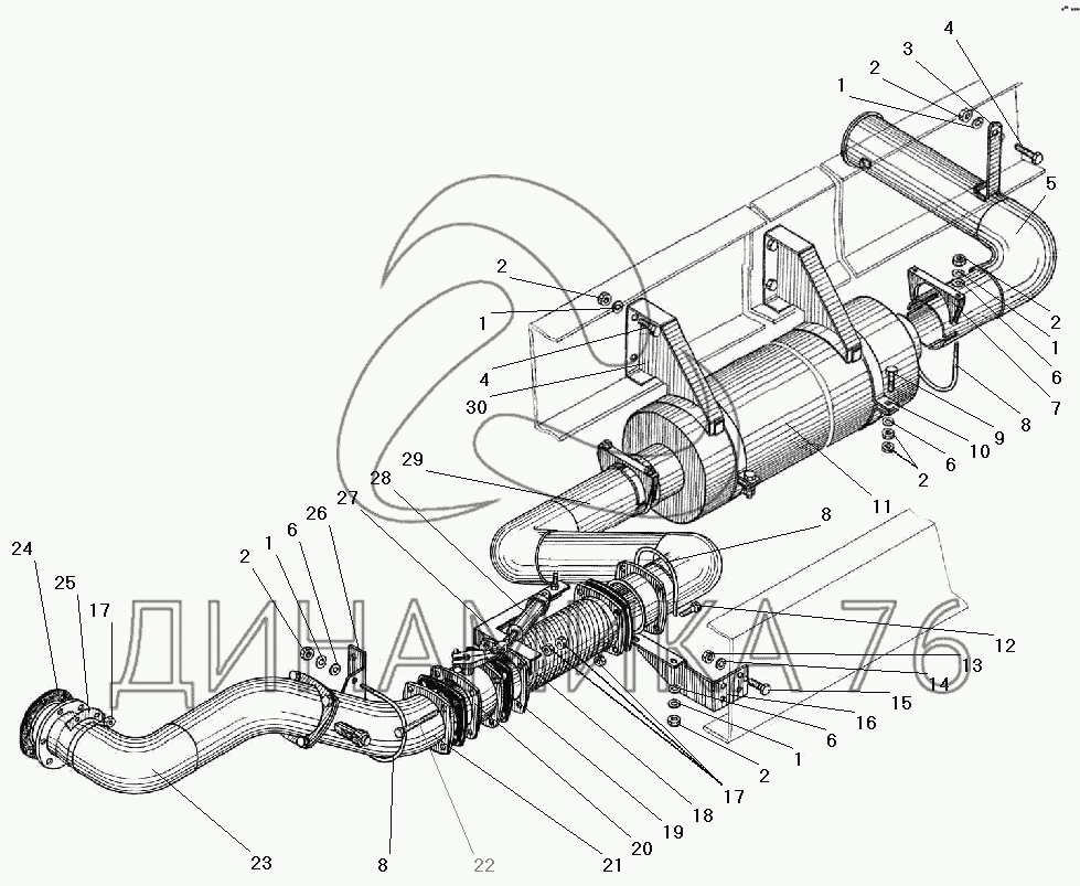Перечень комплектующих от Система выпуска газов на УРАЛ-532301