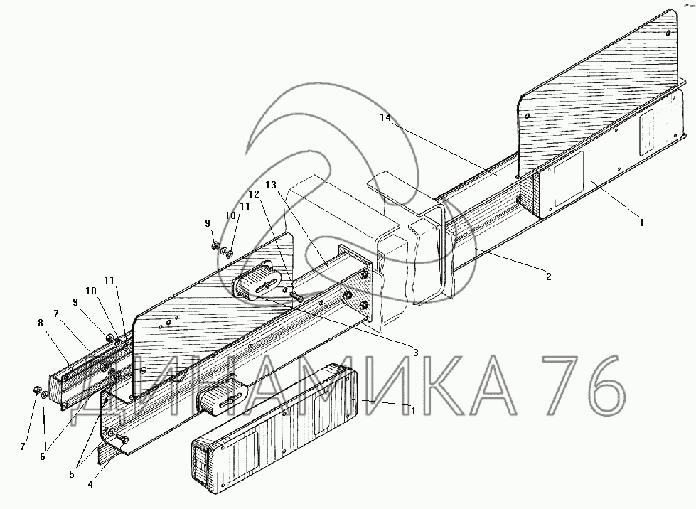 Перечень комплектующих от Установка задних осветительных приборов на УРАЛ-532301