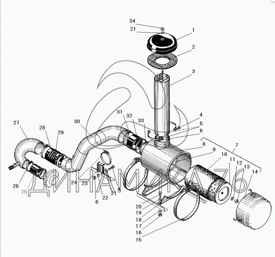 Перечень комплектующих от Воздуховод с воздушным фильтром на УРАЛ-532301