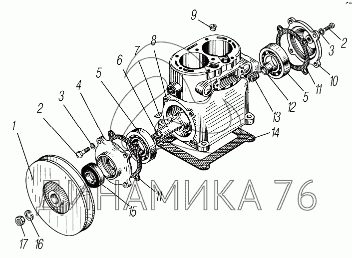 Перечень комплектующих от Блок-картер компрессора на УРАЛ-532361