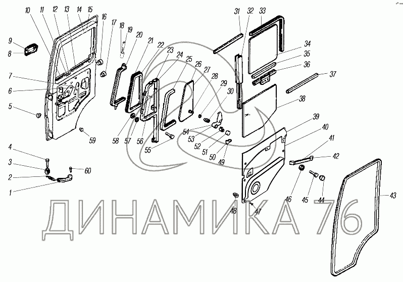 Перечень комплектующих от Двери кабины на УРАЛ-532361