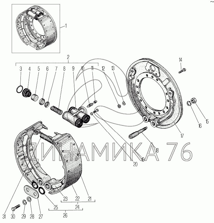 Перечень комплектующих от Рабочий тормоз на УРАЛ-532361