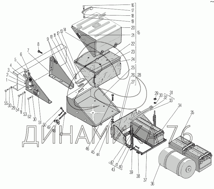 Схемы запчастей предназначены для справочных целей! Мы продаем не все запчасти от Установка контейнера аккумуляторных батарей на УРАЛ-532361, представленные в этом списке.