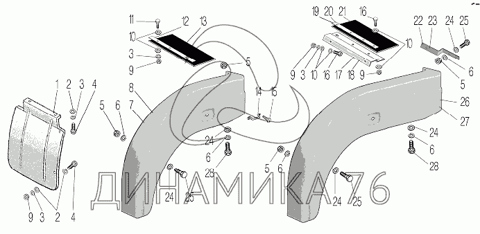 Схемы запчастей предназначены для справочных целей! Мы продаем не все запчасти от Установка крыльев передних на УРАЛ-532361, представленные в этом списке.