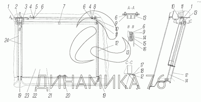 Перечень комплектующих от Установка шторок ветрового стекла на УРАЛ-532361