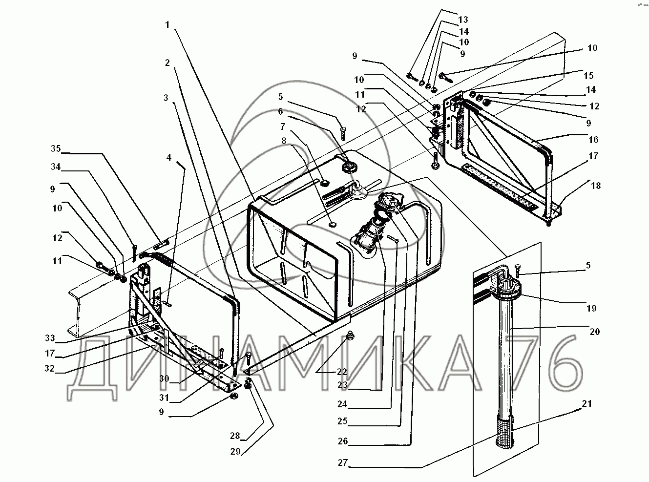 Перечень комплектующих от Основной топливный бак на УРАЛ-55571-30