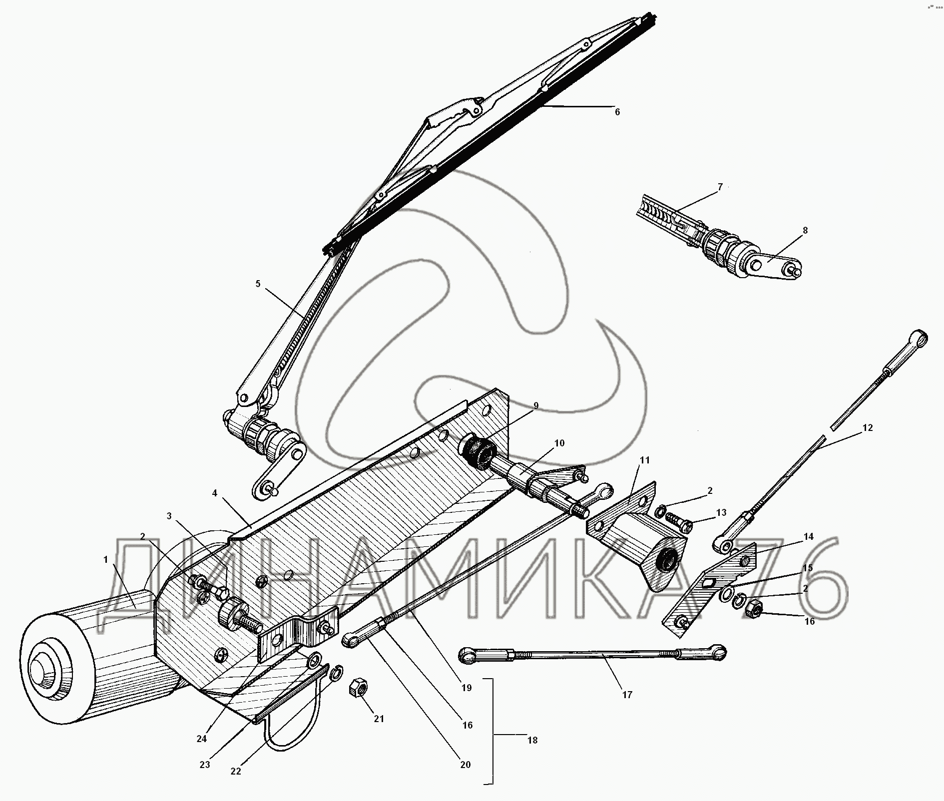 Перечень комплектующих от Стеклоочиститель и его привод на УРАЛ-55571-30