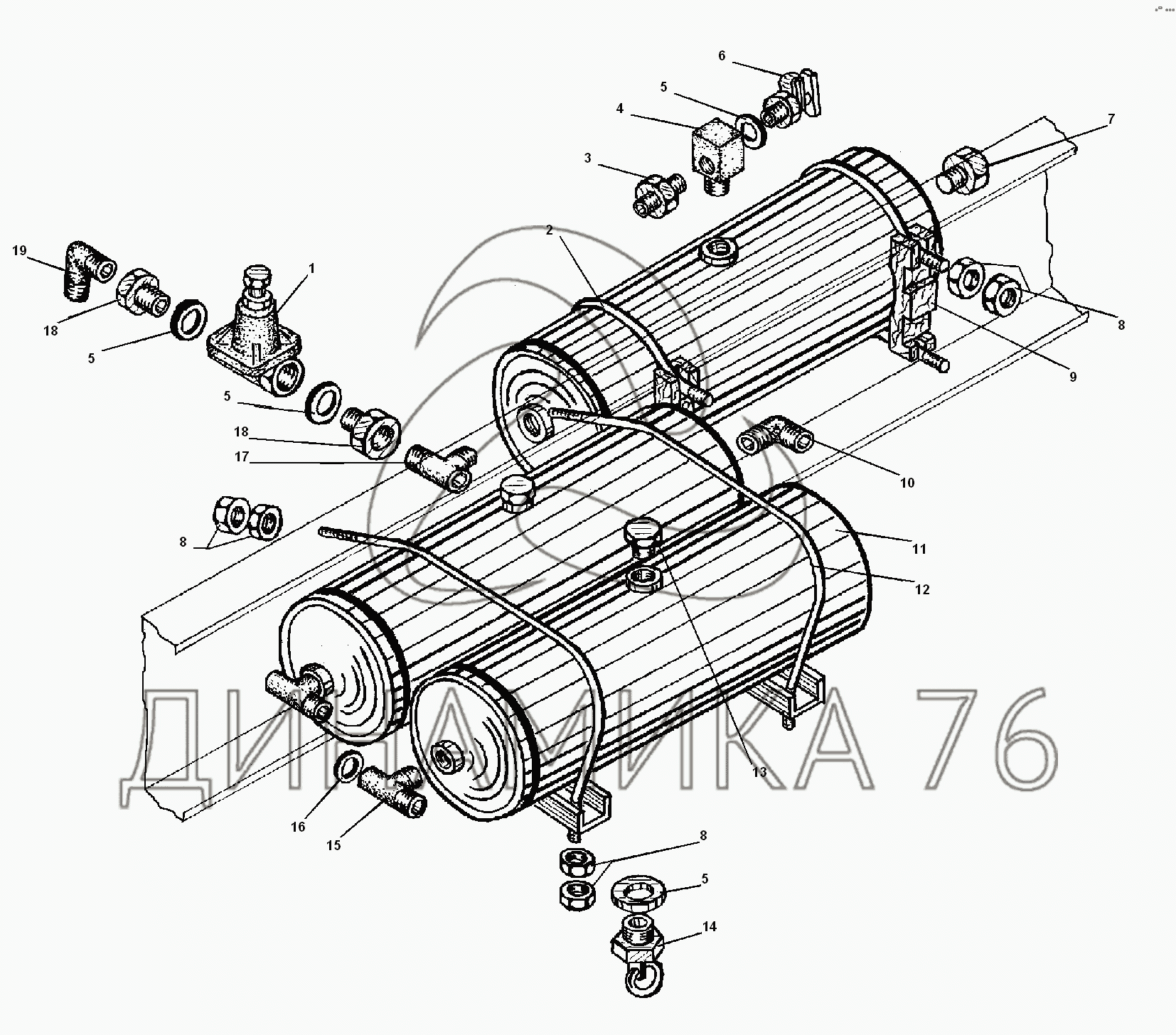 Перечень комплектующих от Установка воздушных баллонов на УРАЛ-55571-30