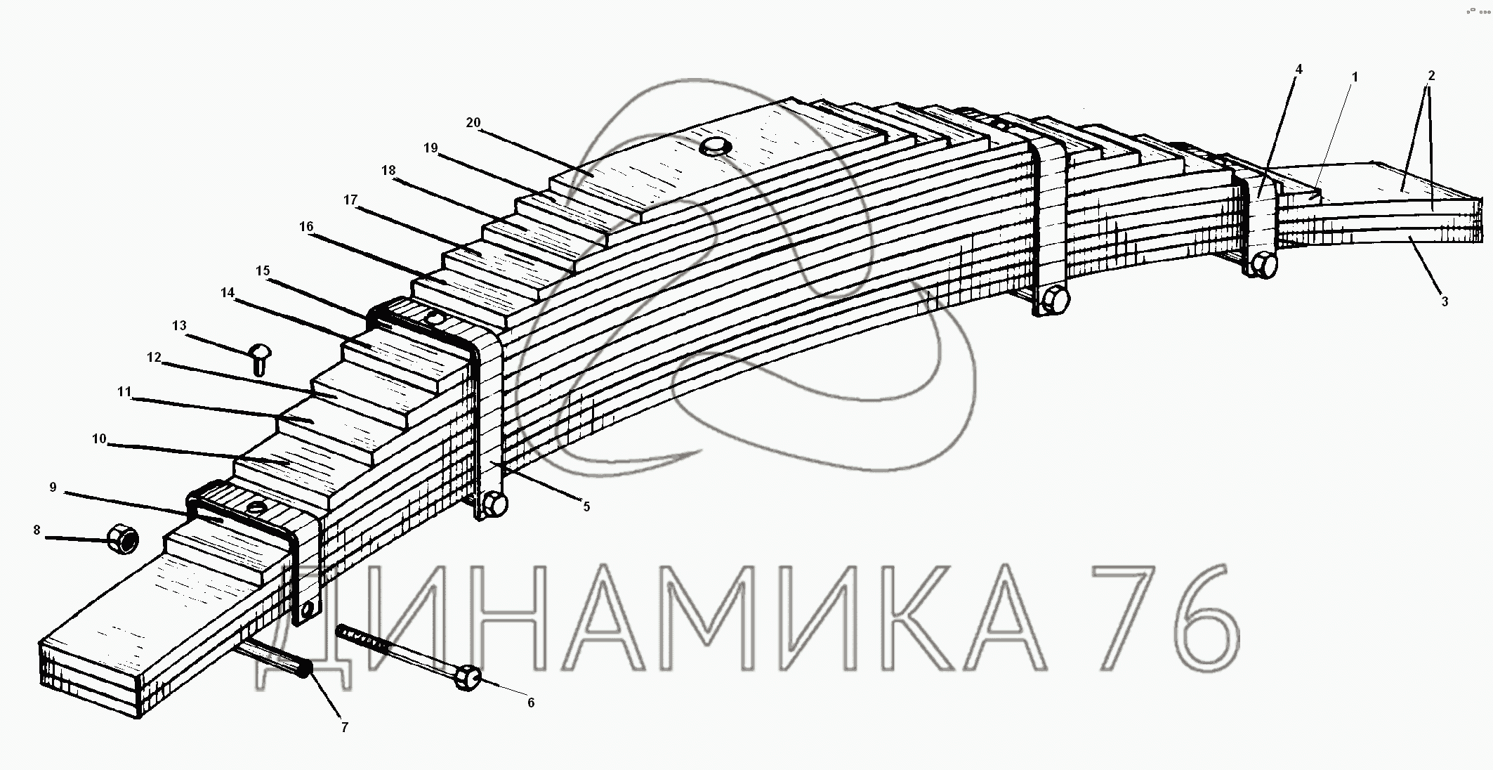 Перечень комплектующих от Задняя рессора на УРАЛ-55571-30