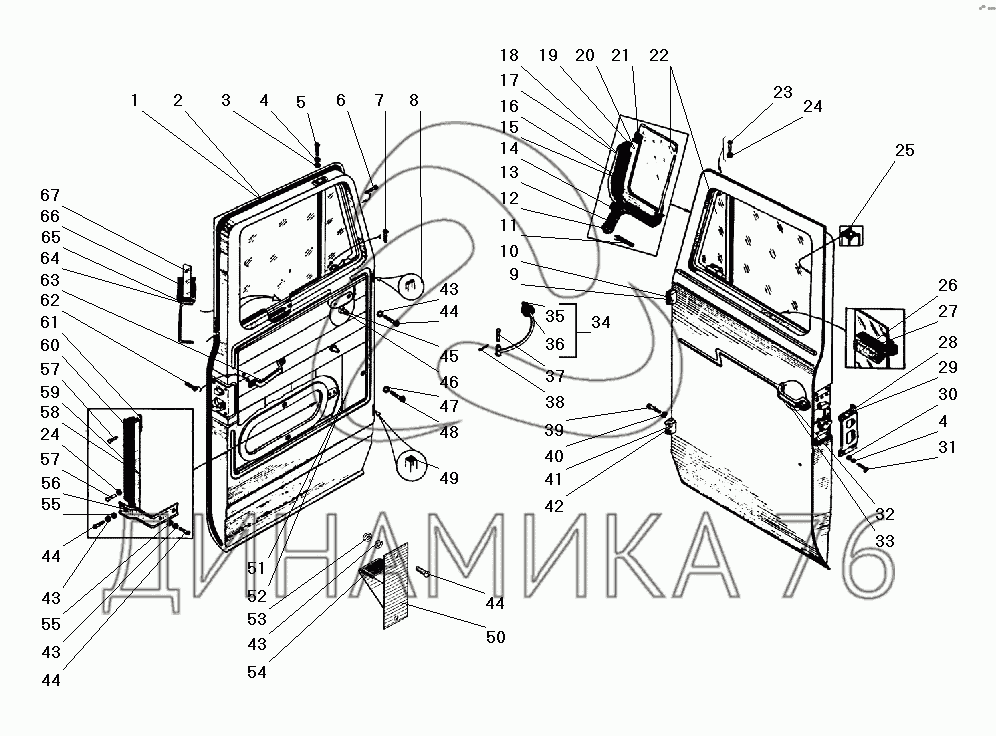 Перечень комплектующих от Двери кабины на УРАЛ-55571-40
