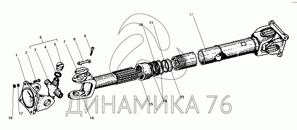 Перечень комплектующих от Карданный вал заднего моста на УРАЛ-55571-40