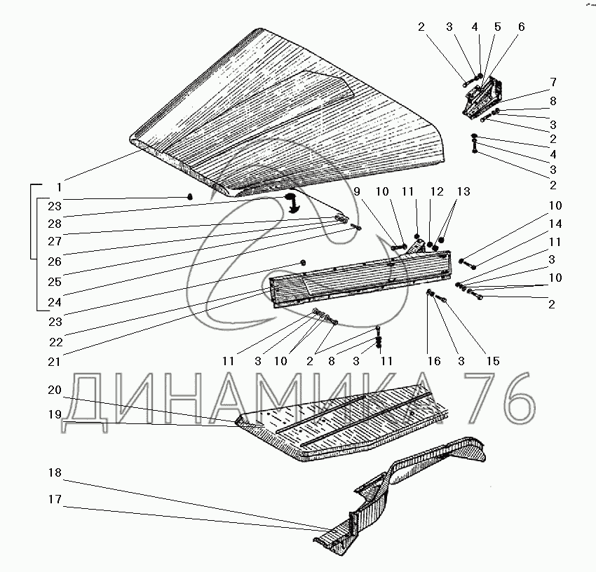 Перечень комплектующих от Оперение автомобиля на УРАЛ-55571-40