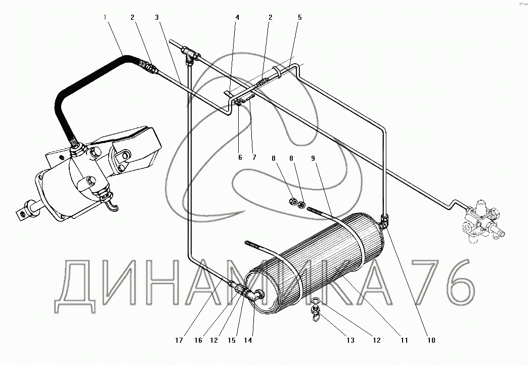 Перечень комплектующих от Пневмопривод выключения сцепления на УРАЛ-55571-40